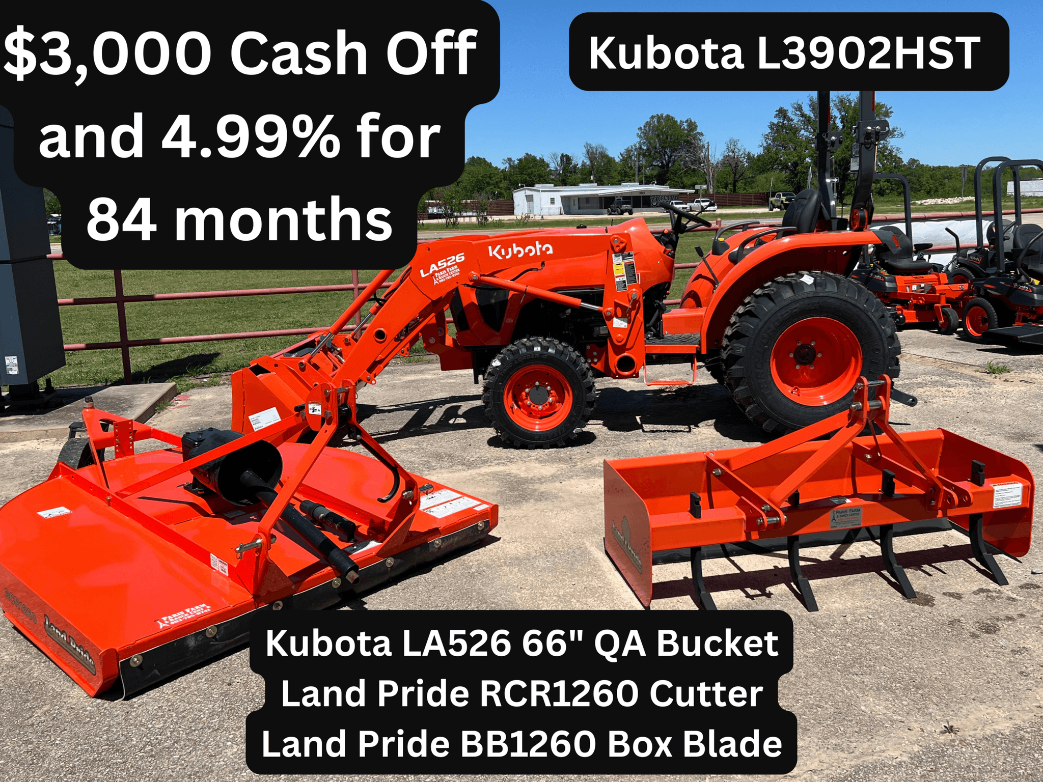 * Package prices expire 06/30/2026. Financing is subject to approval with Kubota Credit Corporation. Package payments are calculated with 4.99% interest for 84 months and $3,000 cash off. See package page for more details. Taxes and insurance are not included in the package payments shown. See dealer for more information.